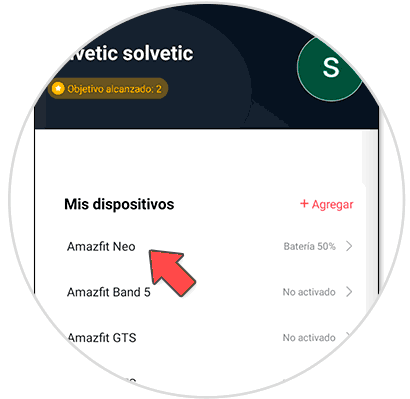 Ahora pulsa sobre el Amazfit Neo para entrar en su configuración.