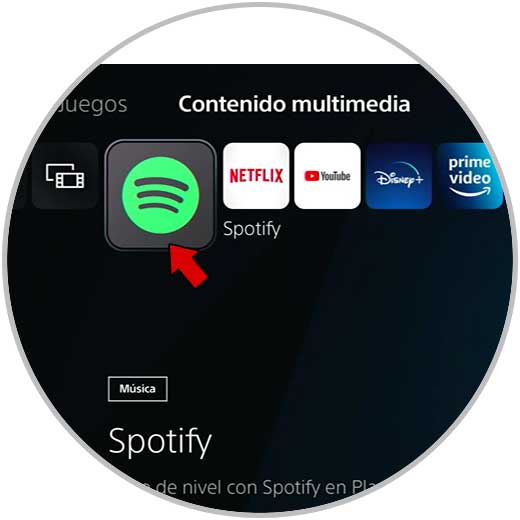 Lo primero que debes hacer es entrar en el apartado multimedia de la PS5 y pulsar en la App de Spotify.
