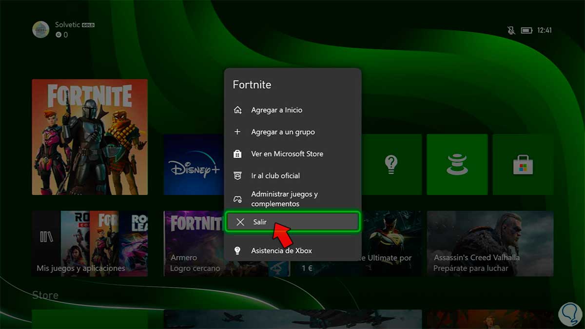 Elige “Salir” del menú desplegable que te aparecerá al lado del juego.