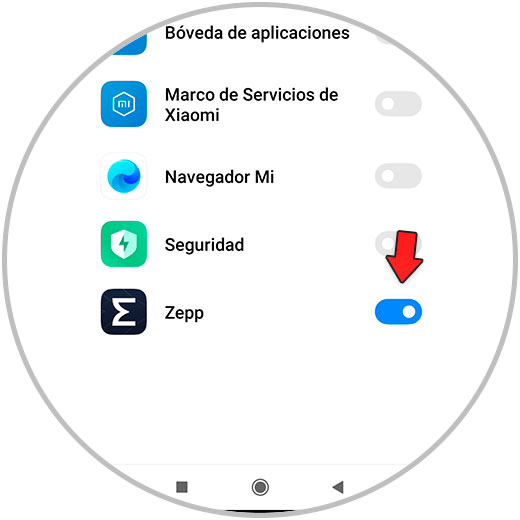 Activa la pestaña de Zepp para que la App tenga acceso a las notificaciones.