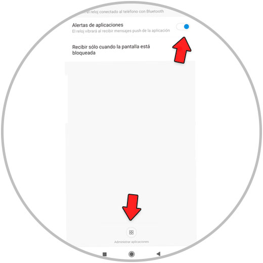 La pestaña de “Alerta de aplicaciones” debe estar activada. Despues selecciona “Administrar aplicaciones”.