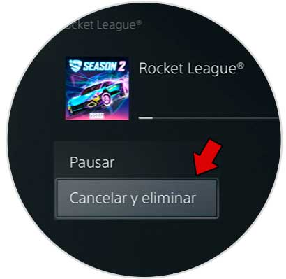 Vamos a cancelar la descarga en curso. Para ello pulsa sobre ella y elige “Cancelar y eliminar”.