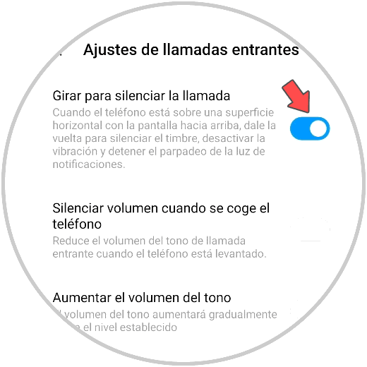 - Activamos la pestaña de “Girar para silenciar llamada”.
