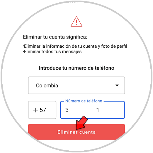 Ingresamos nuestro país y numero registrado en la aplicación: