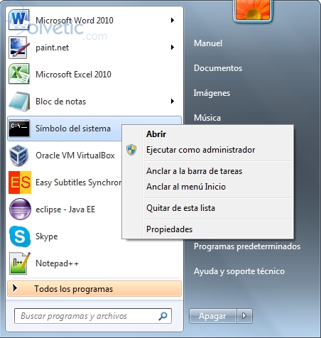 Mencionamos anteriormente que los íconos de los programas que usamos con frecuencia van apareciendo secuencialmente en el menú de Inicio. Adicionalmente, si así lo prefieres, puedes anclar un ícono de programa que uses con frecuencia para que siempre esté en el menú. Para ello, sólo debes hacer click derecho en el ícono del programa y seleccionar la opción “Anclar al menú de inicio”.