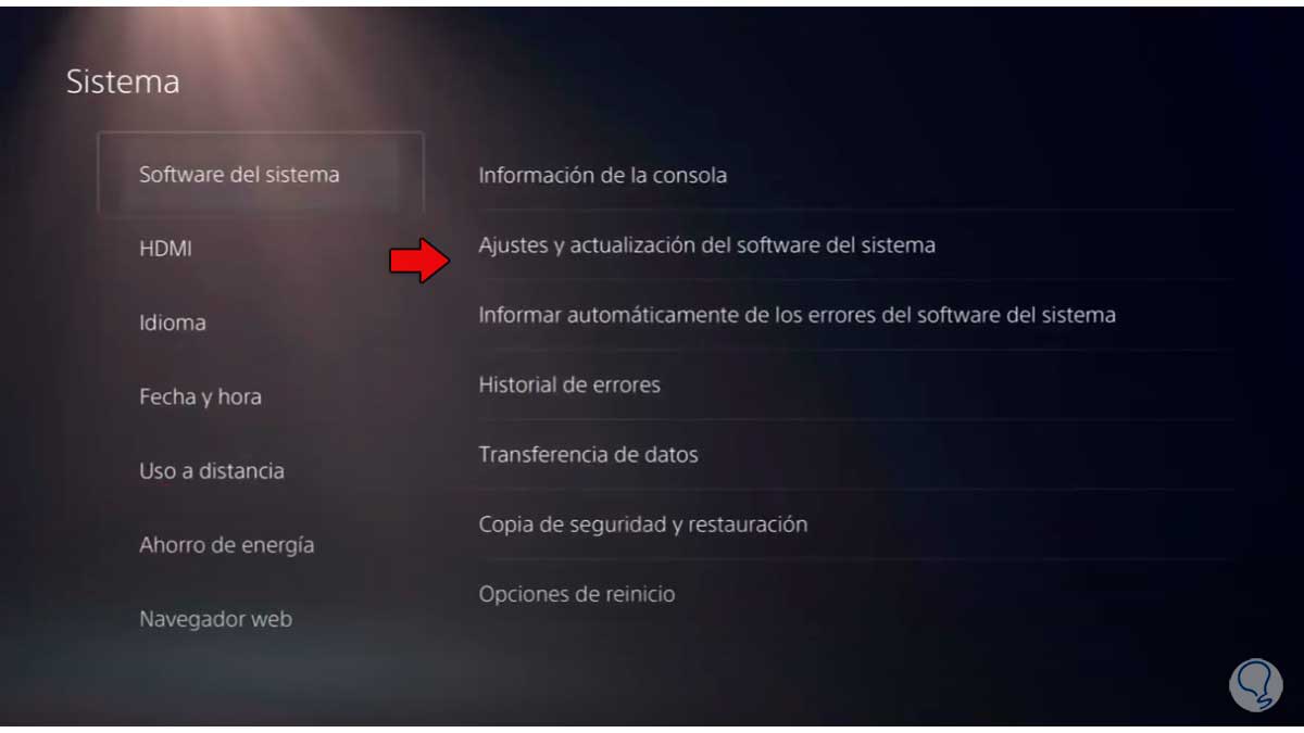 Entra en Software de sistema" y después en "Ajustes y actualización del software del sistema".