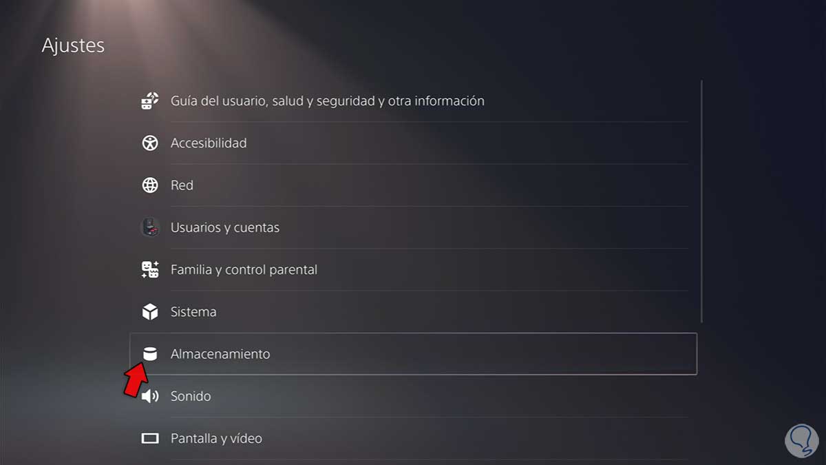Lo siguiente será entrar en el apartado de "Almacenamiento" desde el menú principal.