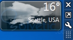 Otro Gadget incluido por defecto en el sistema, El Tiempo te muestra la temperatura y el área a la que se refiere (Estado y País) mientras pone de fondo una imagen representativa del tipo de clima que se está viviendo en el momento.