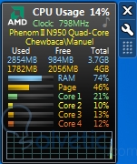Este es uno de los gadgets más situacionales de todos, en general la información presentada es útil pero rara vez le vas a poder sacar verdadero provecho ya que al dispararse el procesador normalmente la imagen de tu computadora se queda estática y no ves moverse los indicadores.