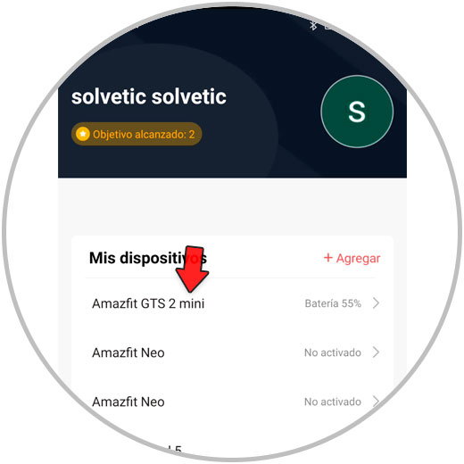 En el apartado “Mis dispositivos” selecciona “Amazfit GTS 2 mini”.