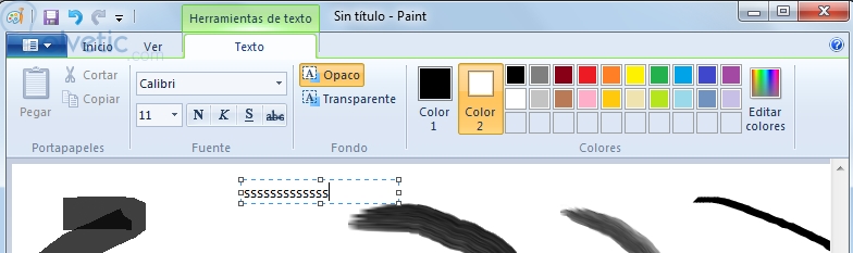 Te permite escribir texto donde hagas click. Una vez seleccionada la herramienta de texto y habiendo hecho click en el lienzo, se abre una pestaña nueva en el menú para modificar las características particular del área donde estás escribiendo. Allí puedes cambiar el tamaño y tipo de fuente, así como el color de las letras y el fondo.