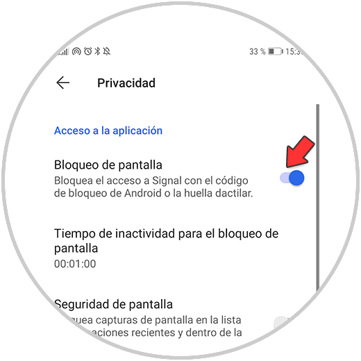 Ahora debes activa la pestaña que pone "Bloqueo de pantalla" para que esta quede bloqueada.