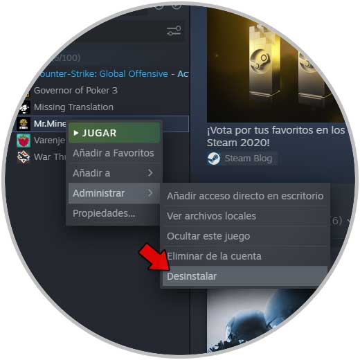Lo primero será desinstalar cada juego, para ello damos clic derecho sobre cada uno y vamos a “Administrar – Desinstalar”: