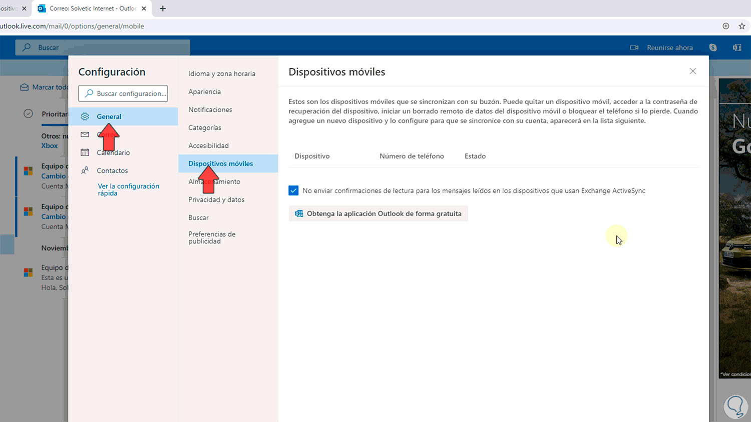 Lo primero que haremos será entrar en la página de Microsoft en móvil o PC e iniciar sesión con la cuenta. Después accedemos al apartado de "Dispositivos". Te dejamos el link a continuación: