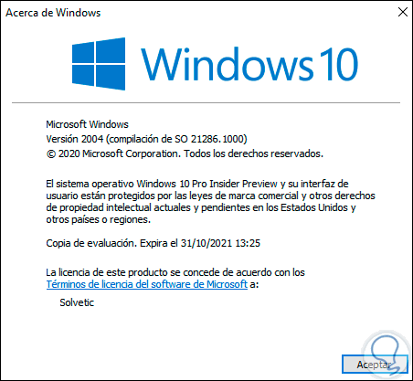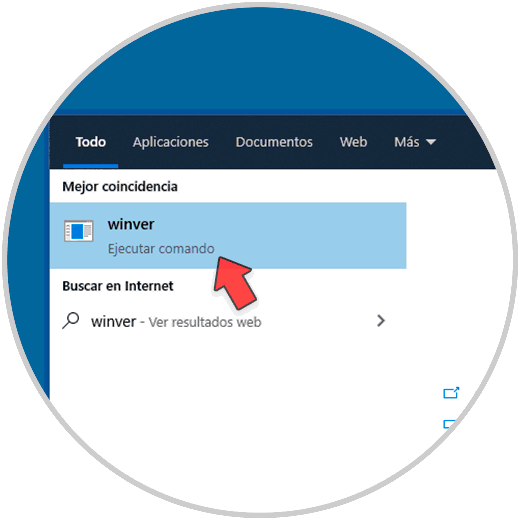 Ingresamos en el buscador "winver" para validar la versión de Windows 10, debe ser mínimo 20226: