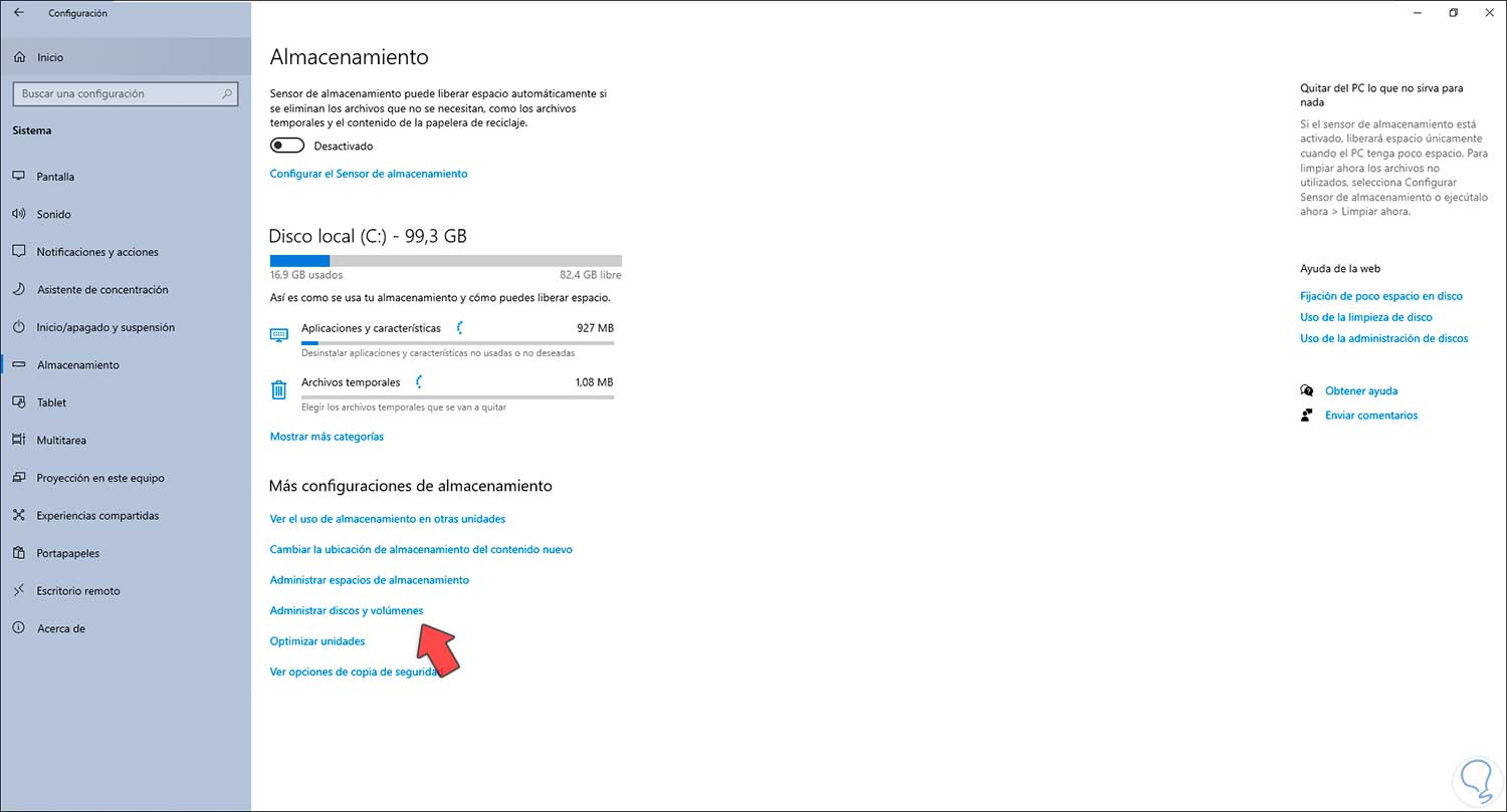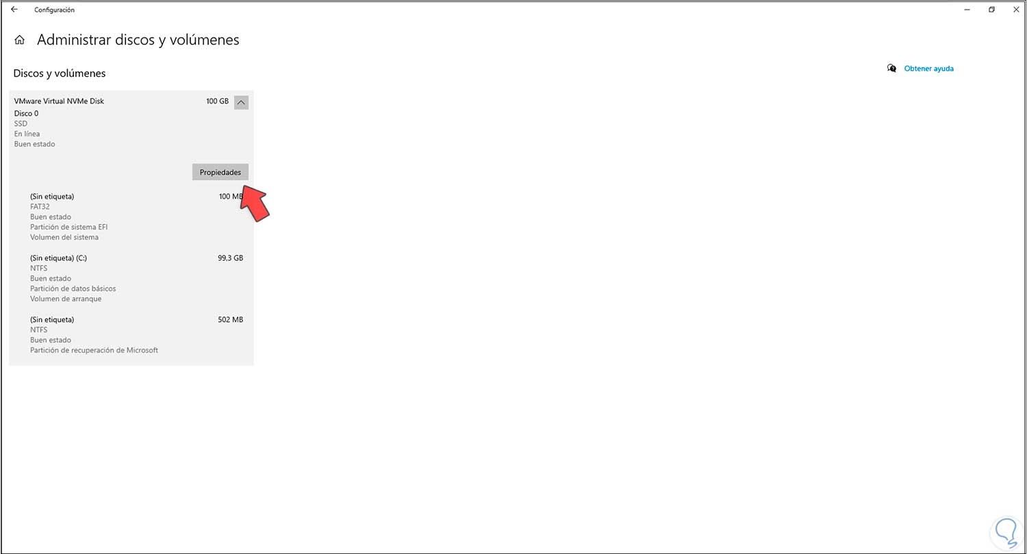 Damos clic en "Administrar discos y volúmenes" para ver lo siguiente:
