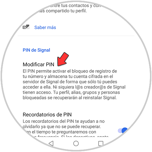 De este modo podrás modificar el PIN que habías asignado en Signal cada vez que lo necesites de manera sencilla.
