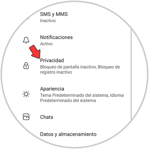 Lo siguiente que debes hacer es pulsar sobre el apartado de "Privacidad"