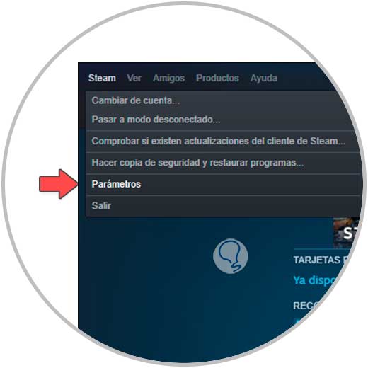 Abre Steam, luego ve a "Steam - Parámetros":