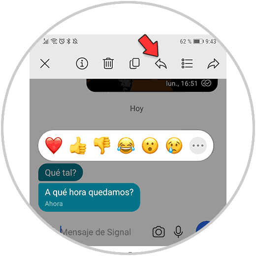 Ahora debes mantener pulsado el mensaje. Verás que en la parte superior aparecen una serie de opciones. En este caso debes seleccionar la flecha que señala el lado izquierdo.