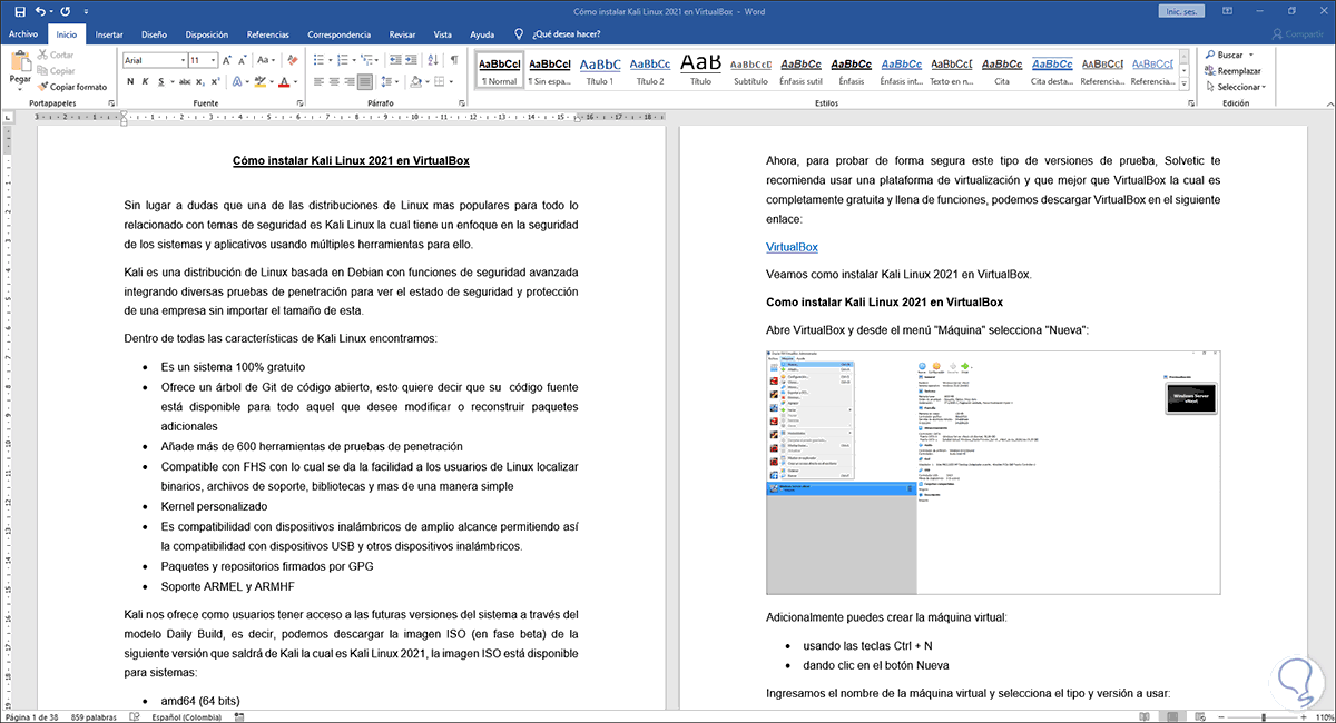 Como resultado vemos que el documento ya no cuenta con secciones activas: