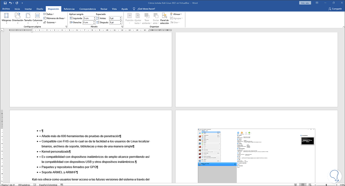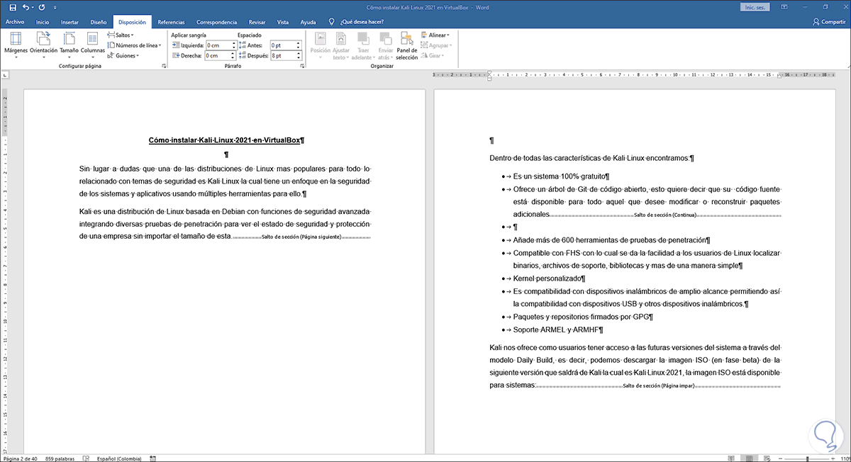 Abrimos Word y vemos los diversos saltos de sección creados allí: