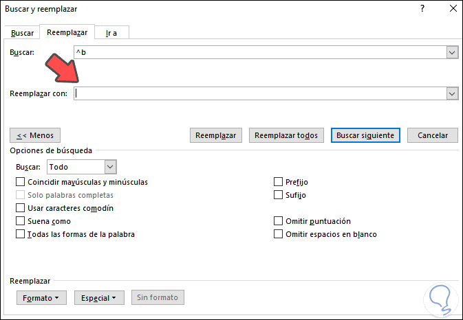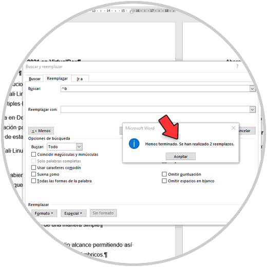 Damos clic en “Reemplazar todos” para que todos los saltos de sección sean borrados del documento seleccionado: