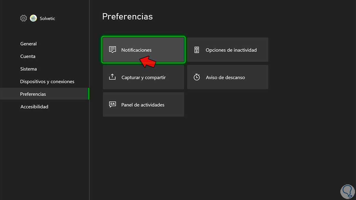 Podemos entrar en "Notificaciones de Xbox" y gestionar cada tipo de notificación individualmente.