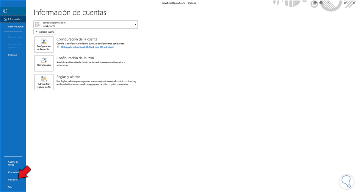 Abrimos Outlook y vamos al menú "Archivo - Opciones":