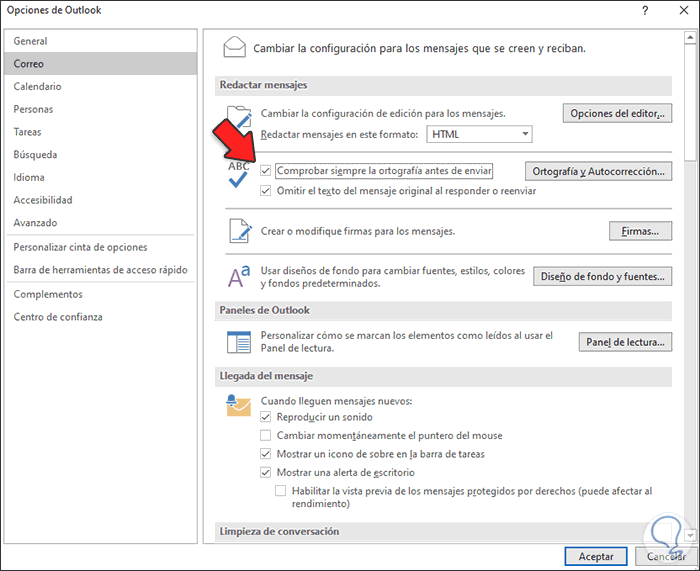 Esto es algo delicado ya que si el mail es importante, resulta imprescindible que está bien redactando y que no contenga faltas ortográficas. La parte buena es que Outlook nos ofrece ls posibilidad de corregir la ortográfica de los correos antes de ser enviados y Solvetic te explicará cómo lograrlo.