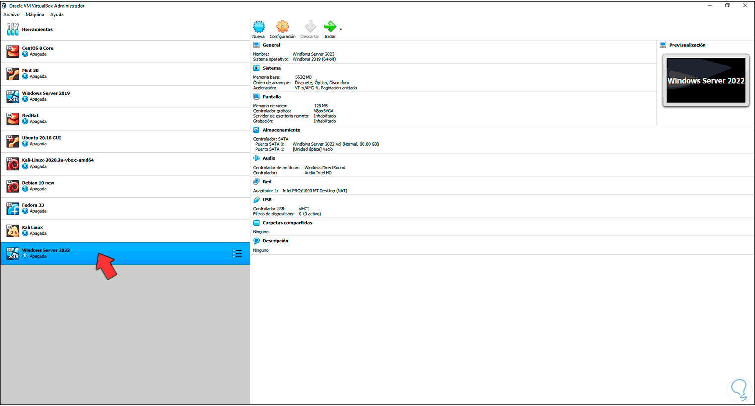 2. Configurar instalación Windows Server 2022 en VirtualBox