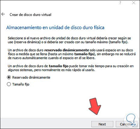 Ahora establecemos el medio de almacenamiento, fijo o dinámico: