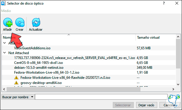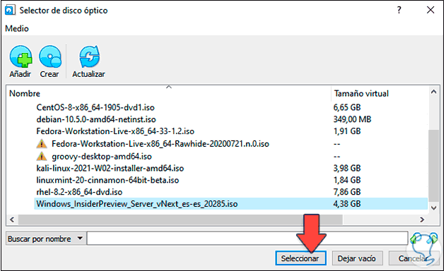 Allí damos clic en el icono de carpeta para seleccionar la imagen ISO que hemos descargado, veremos esto: