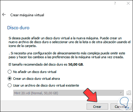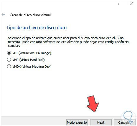 Seleccionamos la opción por defecto y luego elegimos el tipo de disco a crear: