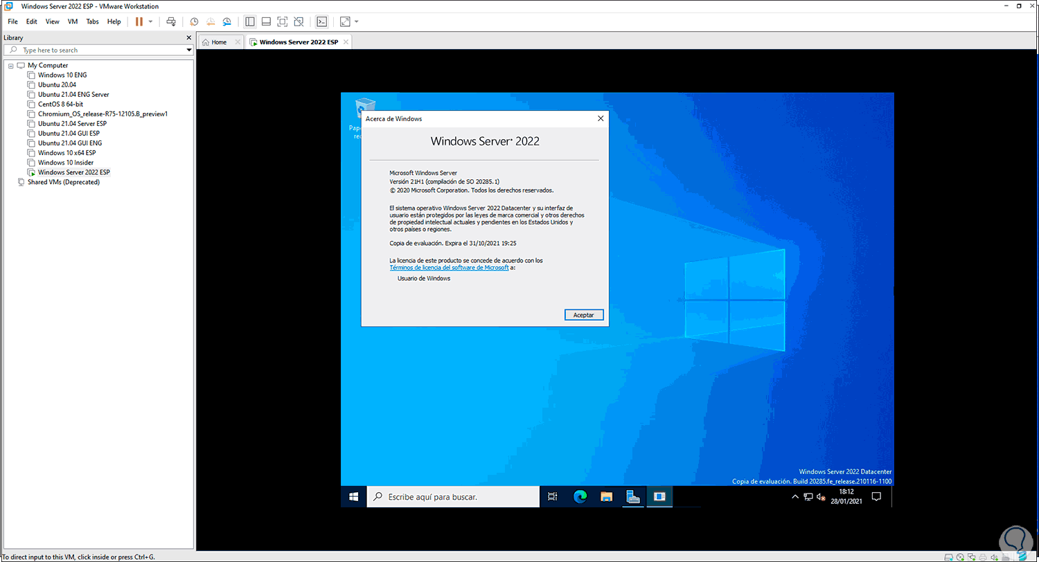 Vemos como probar Windows Server 2022 es simple gracias a los pasos que te ha explicado Solvetic y gracias a VMware.