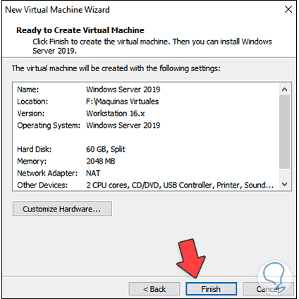 Clic en Finalizar y la máquina virtual debe ser reiniciada: