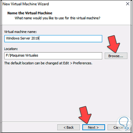 En la siguiente ventana ingresamos el nombre de la máquina y su ubicación local: