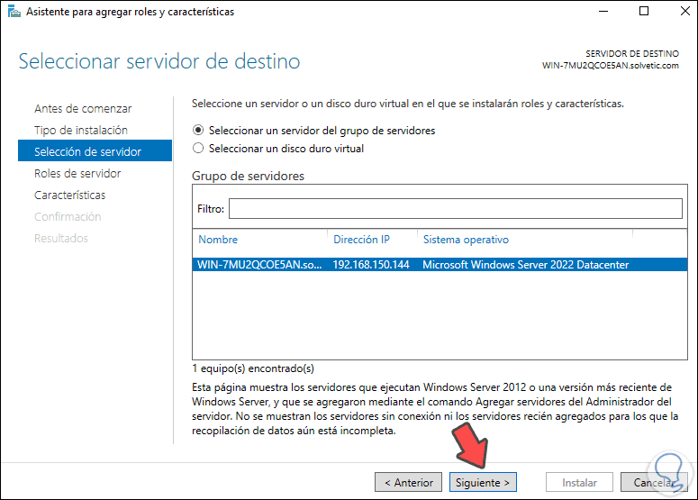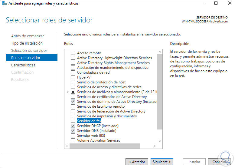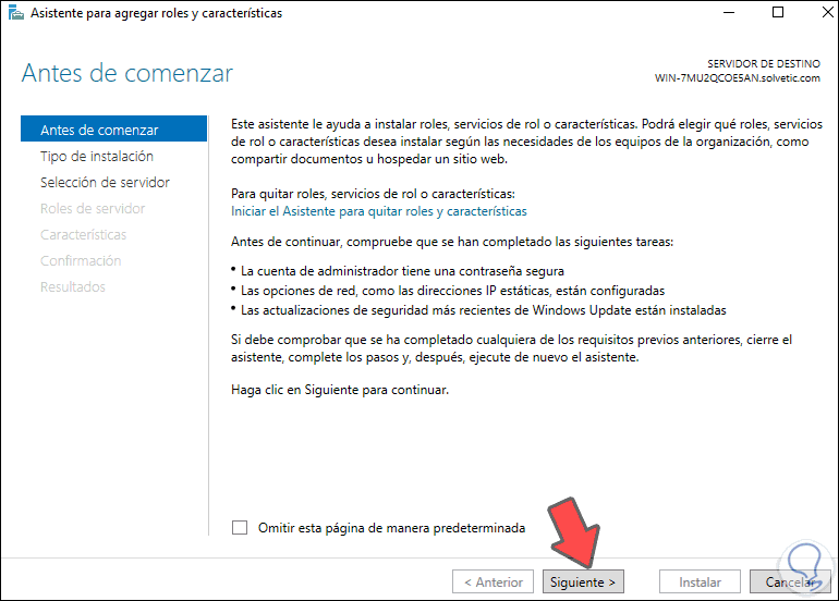 Clic en Siguiente para ir al apartado Roles de servidor: