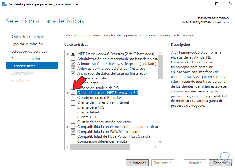 Cómo instalar .NET Framework 3.5 en Windows Server 2022