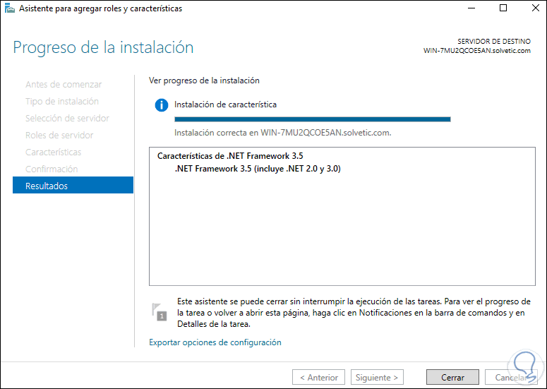 Este es el proceso para instalar .NET Framework 3.5 en Windows Server 2022.