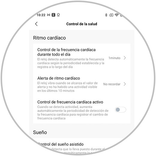 Desde aquí debes establecer cada cuanto tiempo quieres que el reloj registre tu actividad cardíaca.