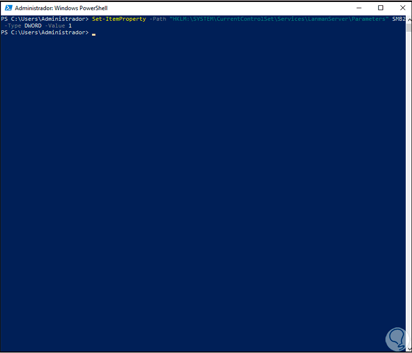 3. Activar SMB2 en Windows Server 2022 desde PowerShell