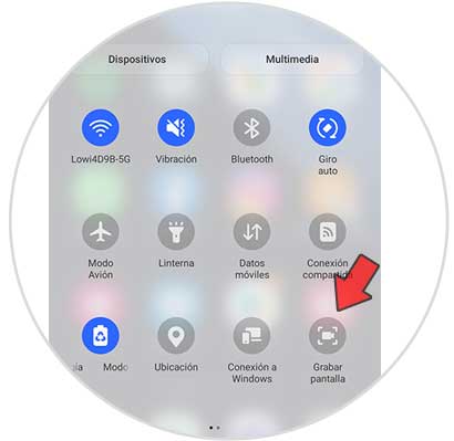Lo primero que debes hacer es desplazar la pantalla desde la parte superior hacia abajo para acceder a los accesos directos. Aquí verás un botón que indica la grabación de pantalla.