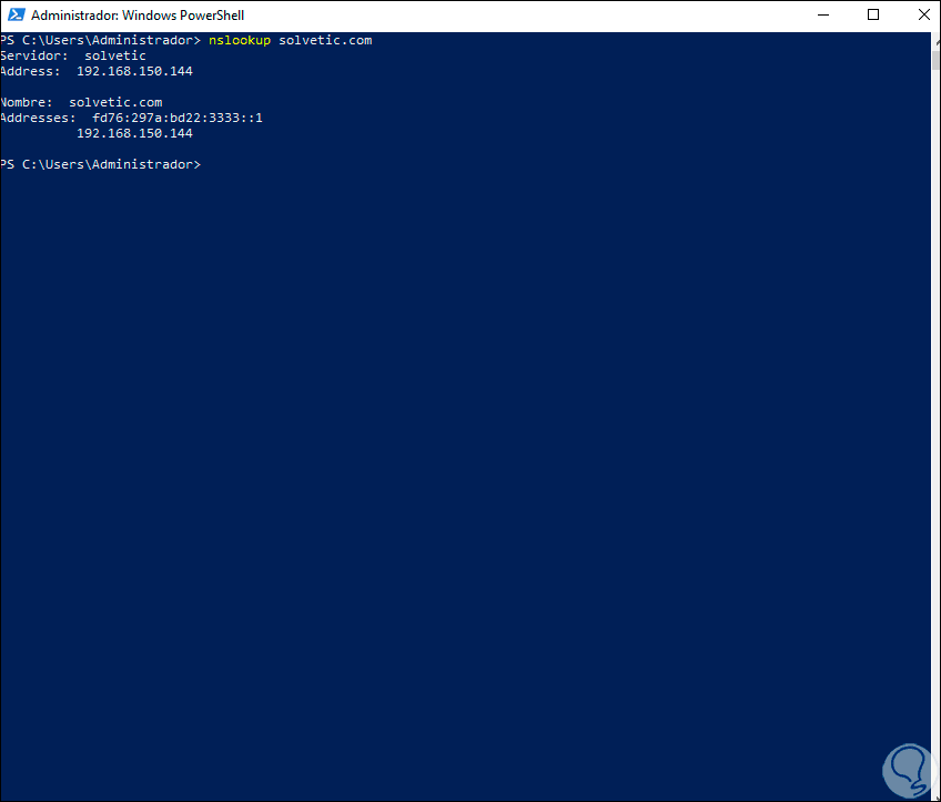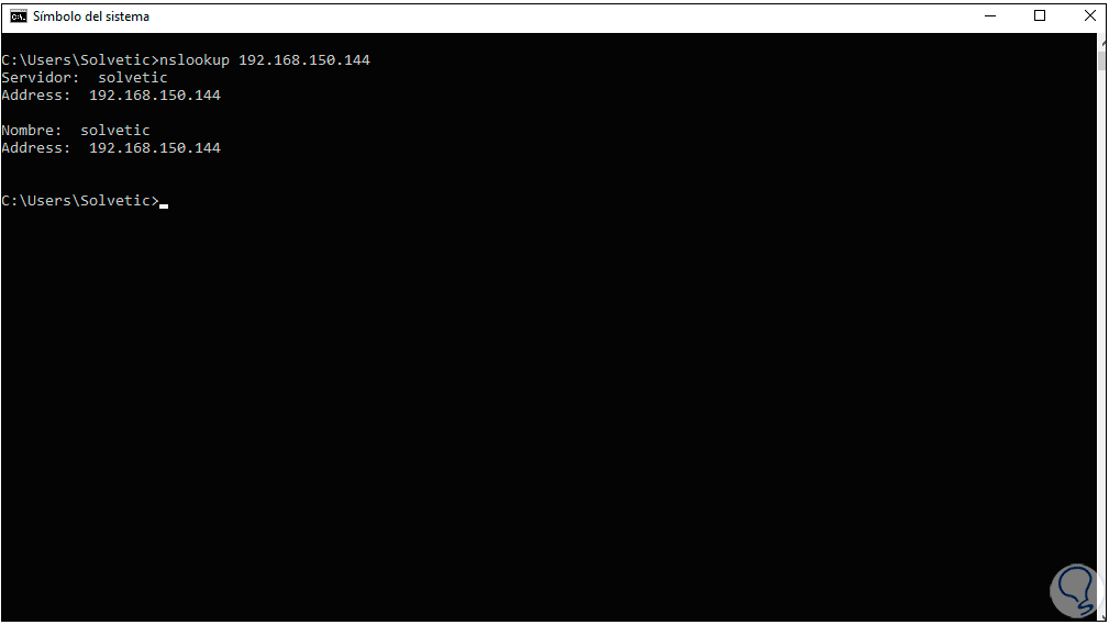 El mismo resultado obtendremos usando nslookup con la IP del servidor: