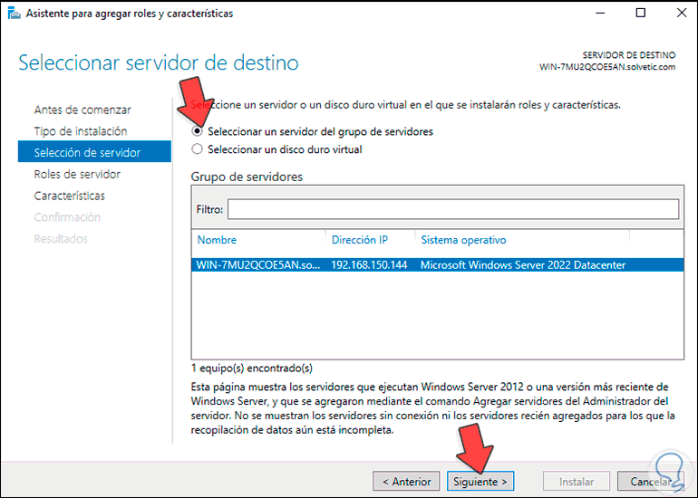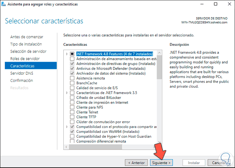 Clic en Siguiente para ver un resumen del rol a instalar: