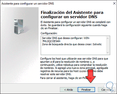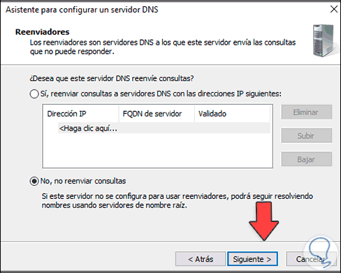 Allí podemos determinar si el servidor con Windows Server 2022 tendrá las funciones de reenviar consultas, en este caso serán necesarias varias direcciones IP, en la próxima ventana veremos el resumen de la configuración: