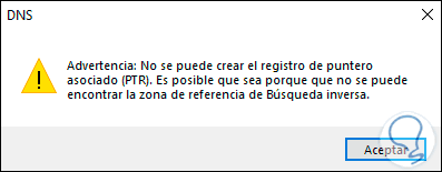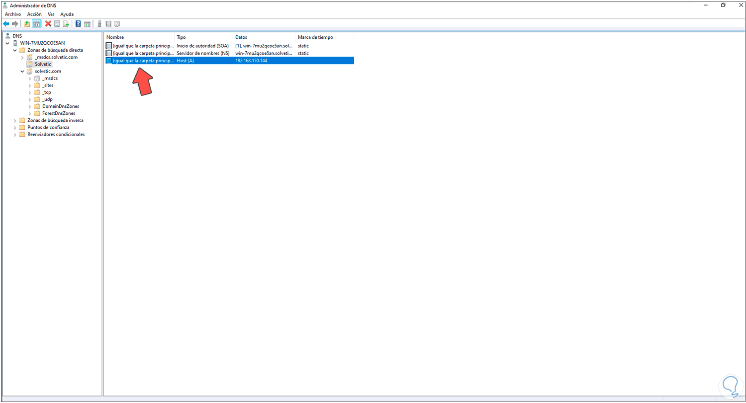Iremos a la zona inversa y validamos la IP asignada por DNS. Vemos el host creado: