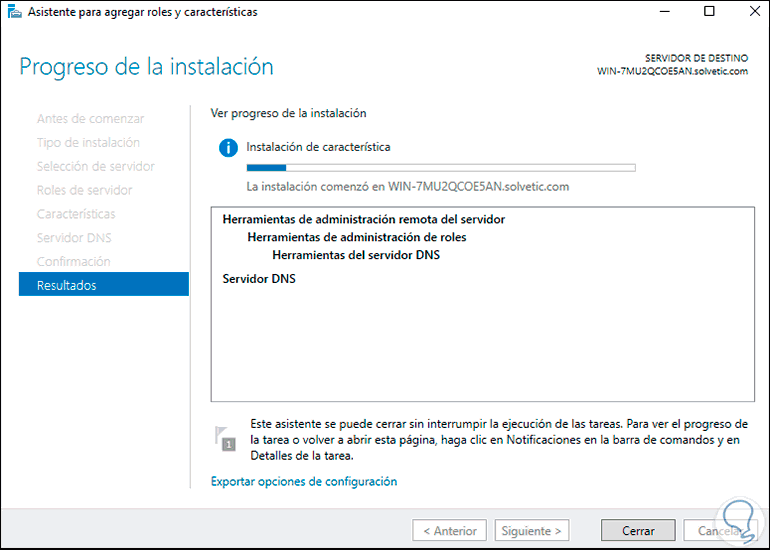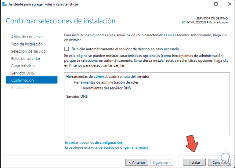 Allí no activaremos nada, damos clic en Siguiente y veremos un resumen del rol: