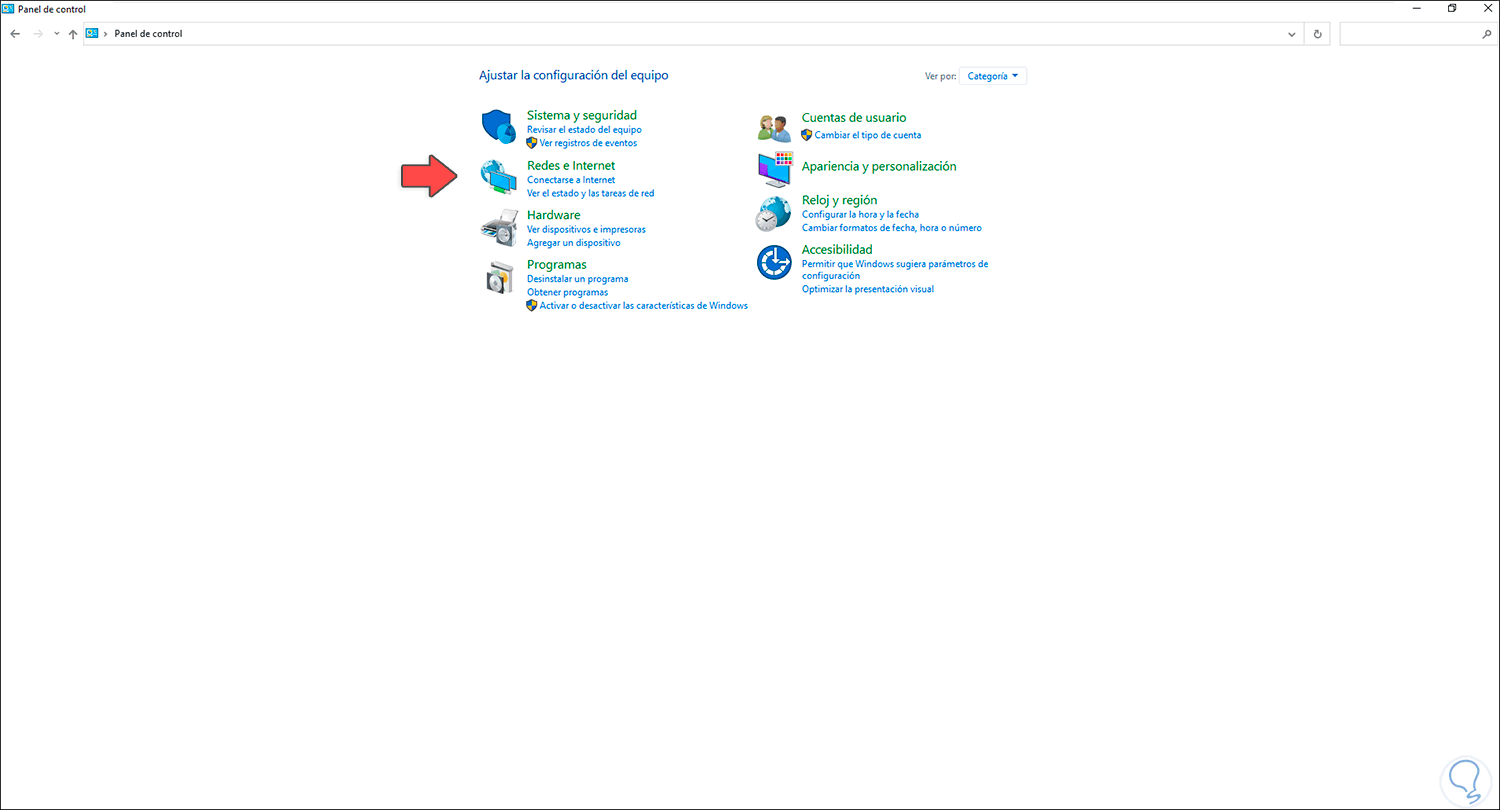 Después de esto abrimos el Panel de control y vamos a Redes e Internet: