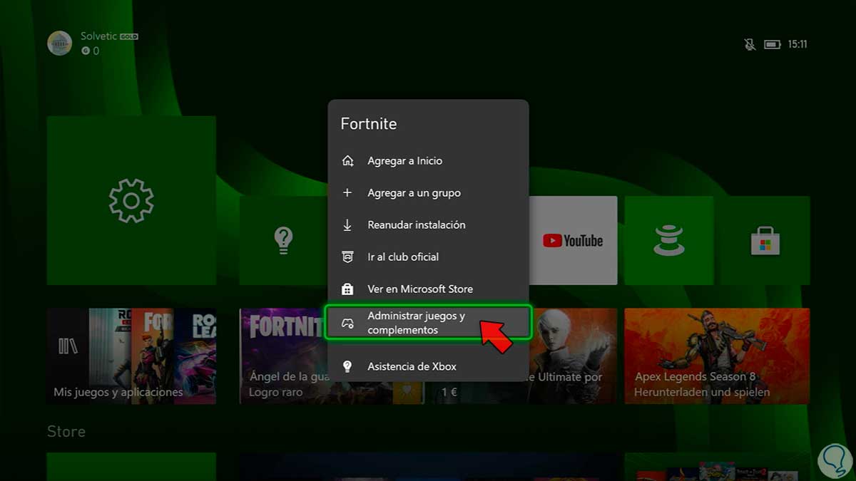 En el menú desplegable pulsaremos en la opción de “Administrar juegos y complementos”.